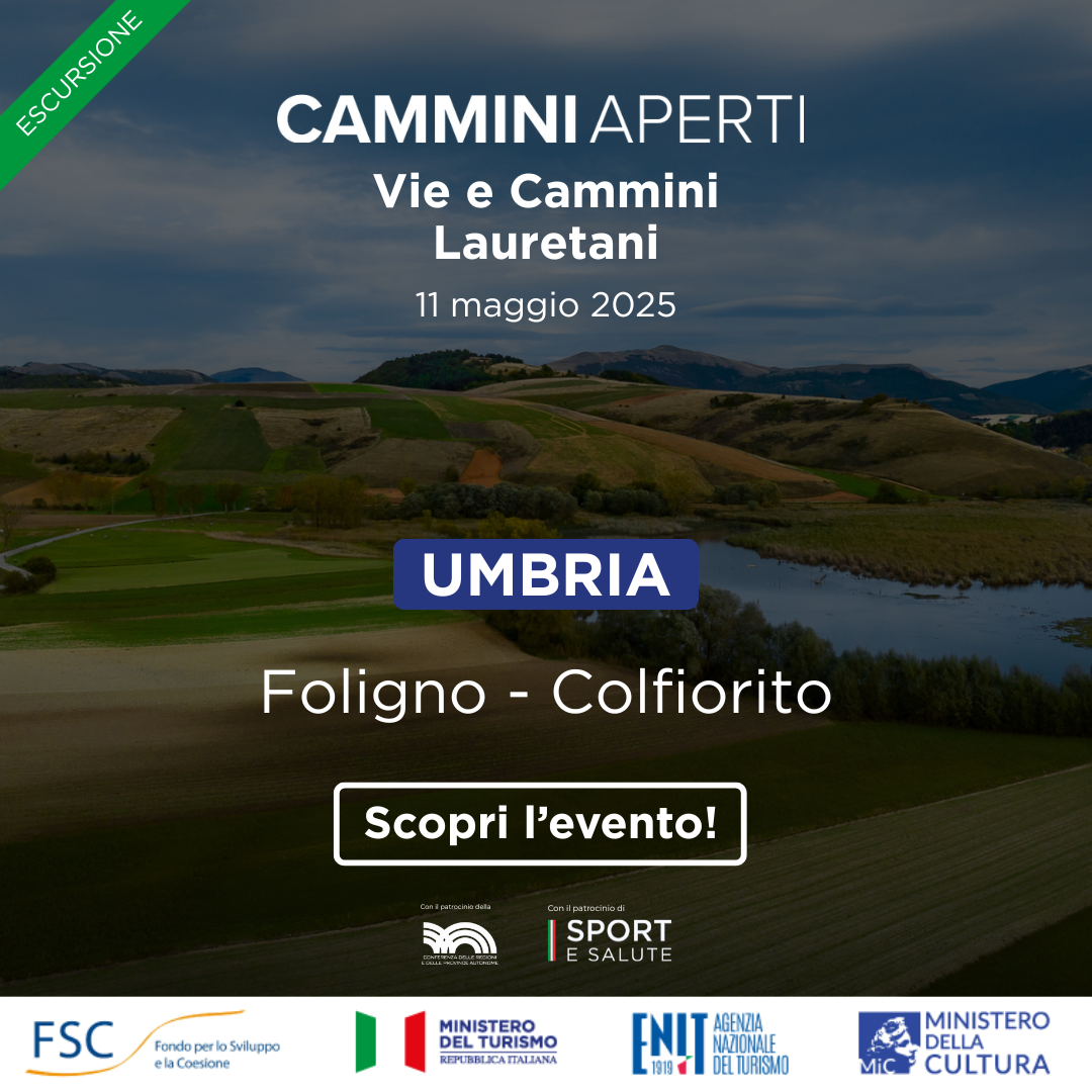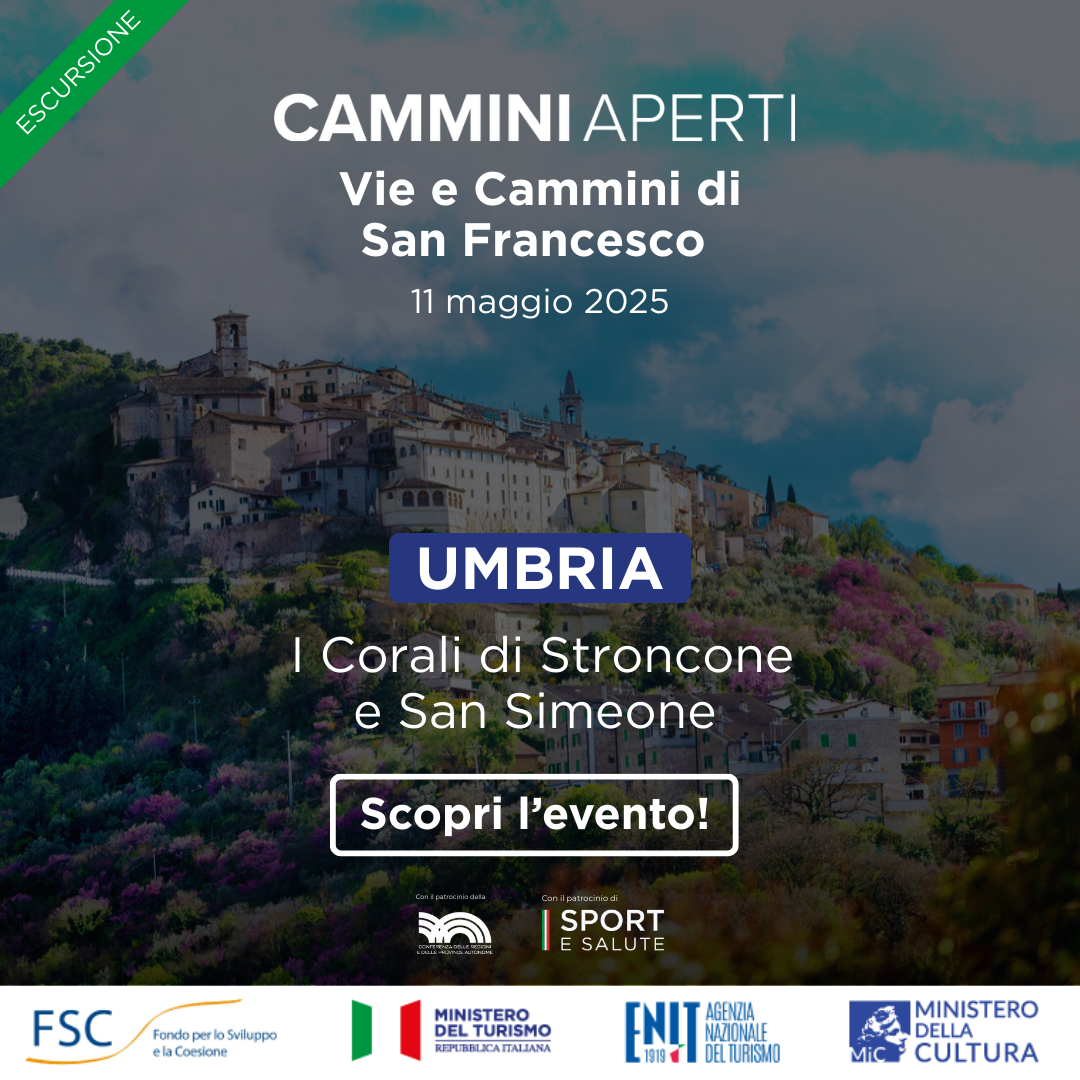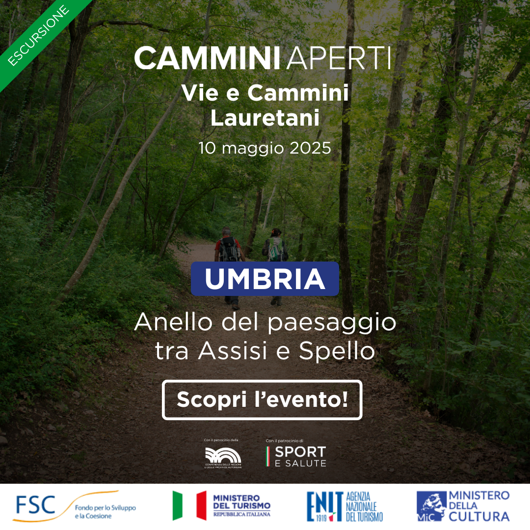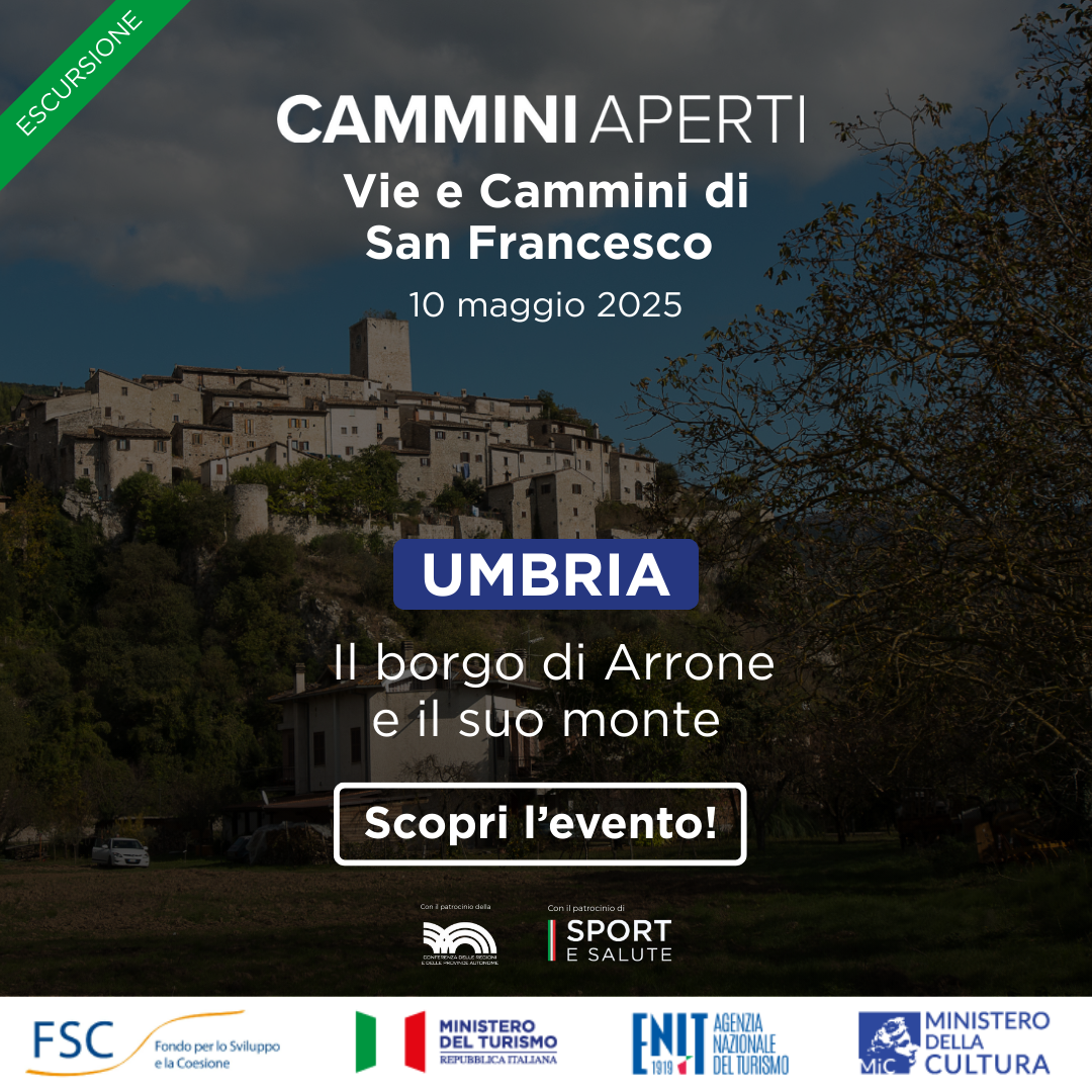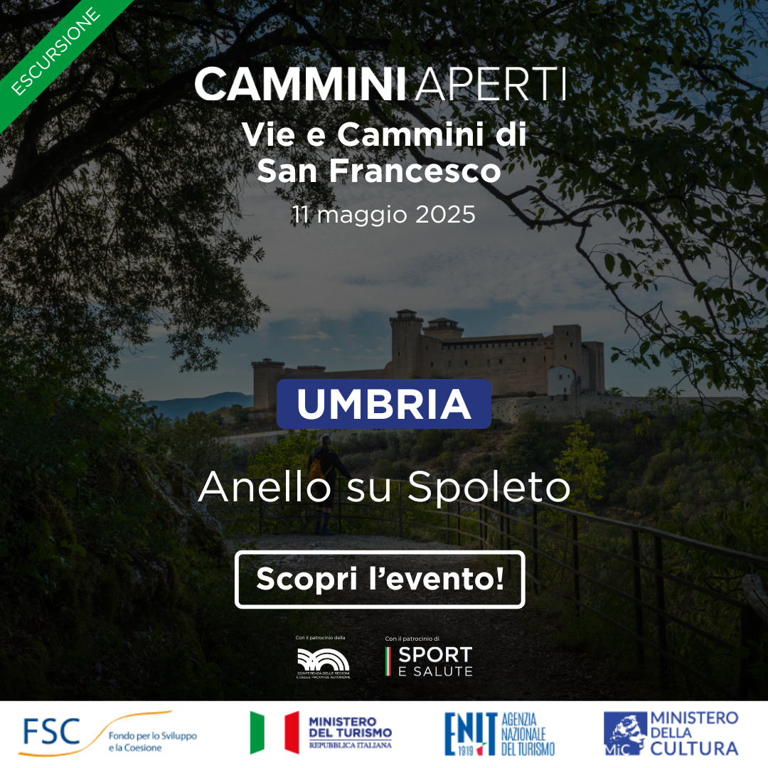 In Umbrien findet am 10. und 11. Mai 2025 die Veranstaltung Cammini Aperti – Sonderausgabe 2025 statt, die der Aufwertung der Wege und der durchquerten Gebiete gewidmet ist. Aufbauend auf dem Erfolg der Ausgabe 2024 bietet diese Sonderausgabe mehrere kostenlose Wanderungen entlang dreier wichtiger spiritueller Wege der Region. Die Initiative konzentriert sich auf drei Hauptthemen: Barrierefreiheit, Förderung inklusiver Wege; Spiritualität, Hervorhebung der intrinsischen Bedeutung der Wege; und ökologische Nachhaltigkeit, Förderung eines respektvollen Umgangs mit dem Gebiet. Die Wanderungen finden entlang der Wege und Pfade des Heiligen Franziskus statt (mit Rundwegen um Spoleto, zur Entdeckung des Dorfes Arrone und seines Berges sowie zwischen den Chören von Stroncone und San Simeone), des Benediktwegs (mit Stationen in der Krypta der Basilika San Benedetto da Norcia und in Monteleone di Spoleto, Erkundung der Biga und der Herberge) und der Lauretanischen Wege und Pfade (mit einer Route von Foligno nach Colfiorito).