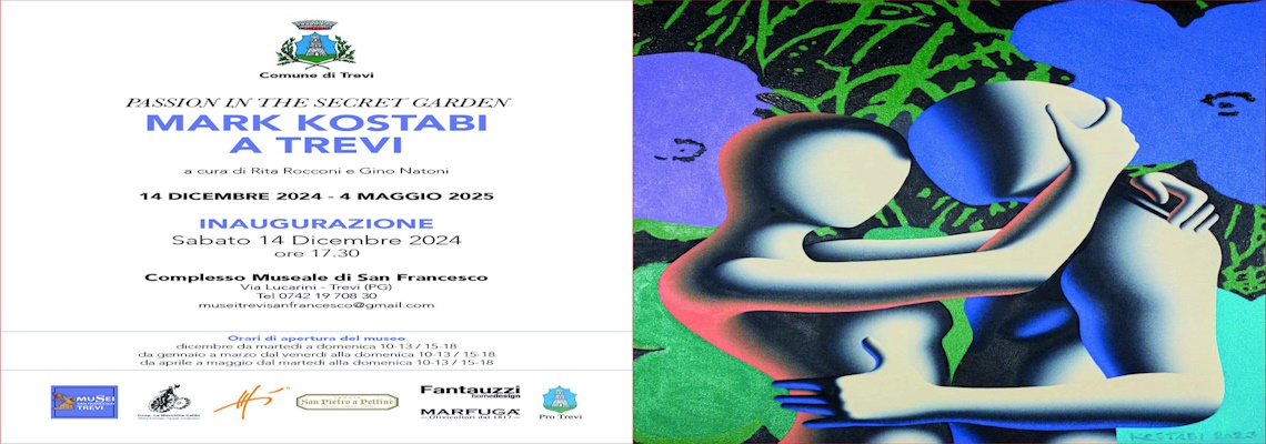 Vom 14. Dezember 2024 bis zum 4. Mai 2025 wird im Complesso Museale di San Francesco in Trevi die von Rita Rocconi und Gino Natoni kuratierte Ausstellung „Passion in The Secret Garden - Mark Kostabi in Trevi“ zu sehen sein.