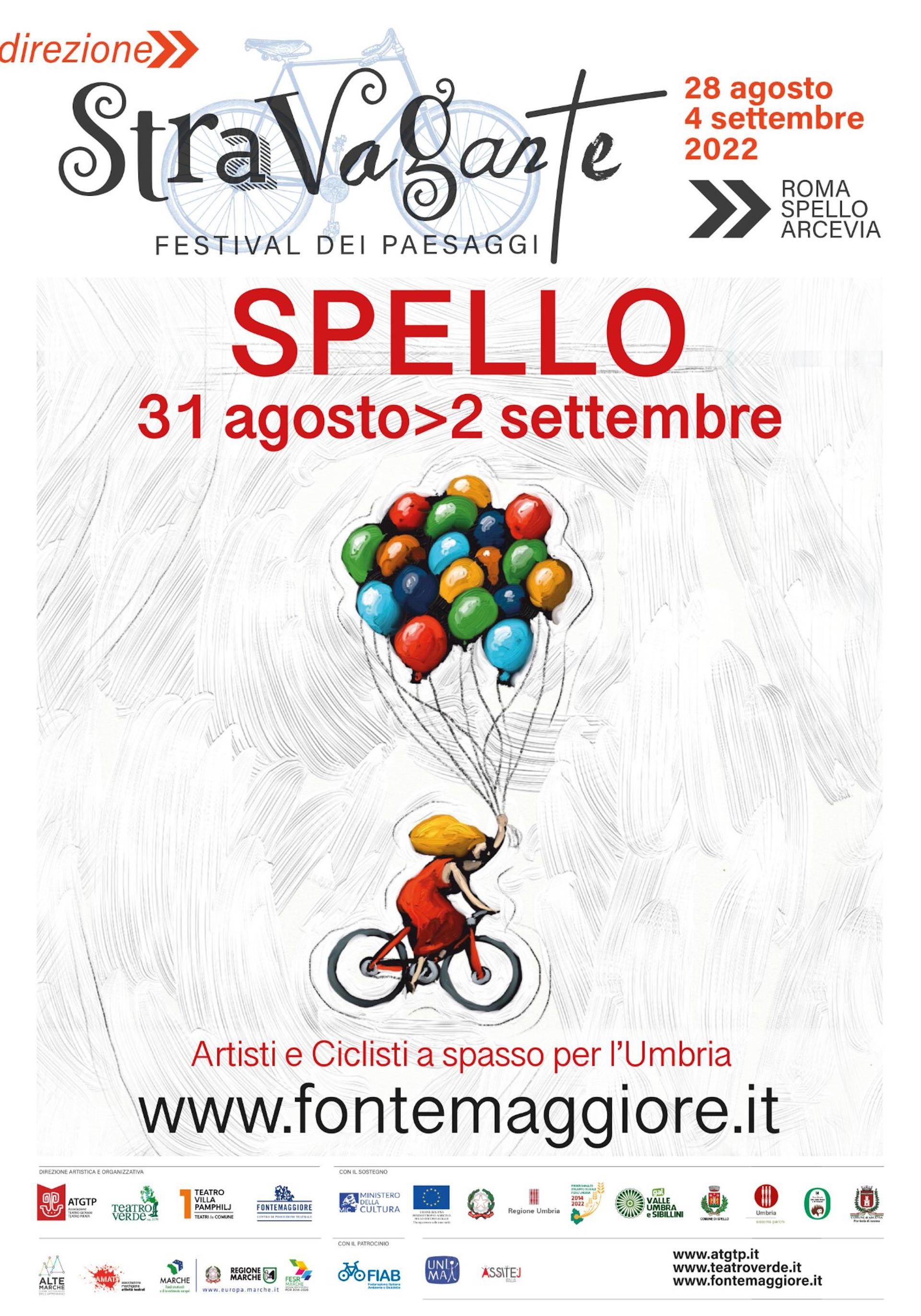 Alle 17.45 partirà la Pedalata ecologica alla scoperta del paesaggio spellano a cura delle associazioni sportive del territorio con un percorso a difficoltà bassa di 15 km. Per info e prenotazioni: entro mercoledì 31 Agosto al cell. 353 427 5107 (scrivere: Pedalata ecologica). Nel tardo pomeriggio, alle 18.00, bambini e famiglie potranno riunirsi per assistere allo spettacolo di narrazione e musica di Stravagante Alfonsina, per terminare alle 19.15 con l’Esibizione della Filarmonica Properzio.