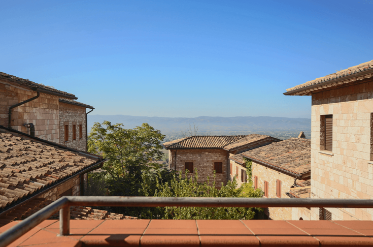 Es liegt direkt außerhalb der Stadtmauern von Assisi, nur wenige Schritte von der Wallfahrtskirche San Damiano und der Basilika Santa Chiara entfernt.