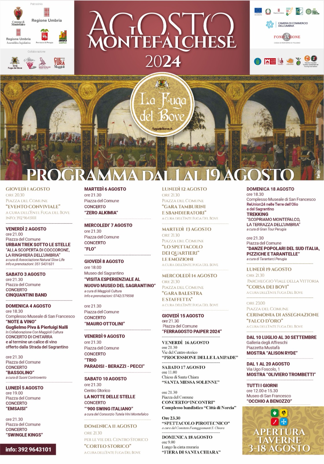 The event will culminate on the evening of 19 August, at the Viale della Vittoria car park, with the famous "Corsa dei bovi", a re-enactment event born in 1972 from the ancient chronicles of the Renaissance period of the City of Montefalco.
