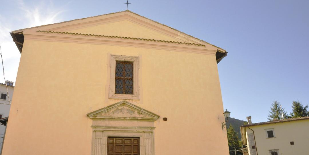 A Renaissance-style portal opens on the wide façade. It has one single nave with a square presbytery.