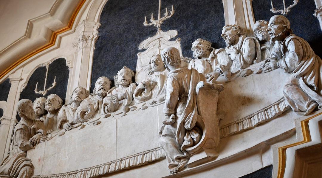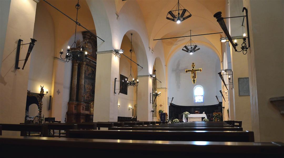 The door is surmounted by a stone archivolt with a raised arch and in the centre of the architrave is carved the mystical lamb with eagles at the two corners that together with the lamb repeat the development of the frieze in smaller dimensions. Inside you can admire paintings and frescoes of the seventeenth and eighteenth centuries, a tabernacle of holy oils, marble and good workmanship and, in the sacristy, a beautiful polyptych, depicting the coronation of the Virgin by Rinaldo da Calvi (1520-1521).