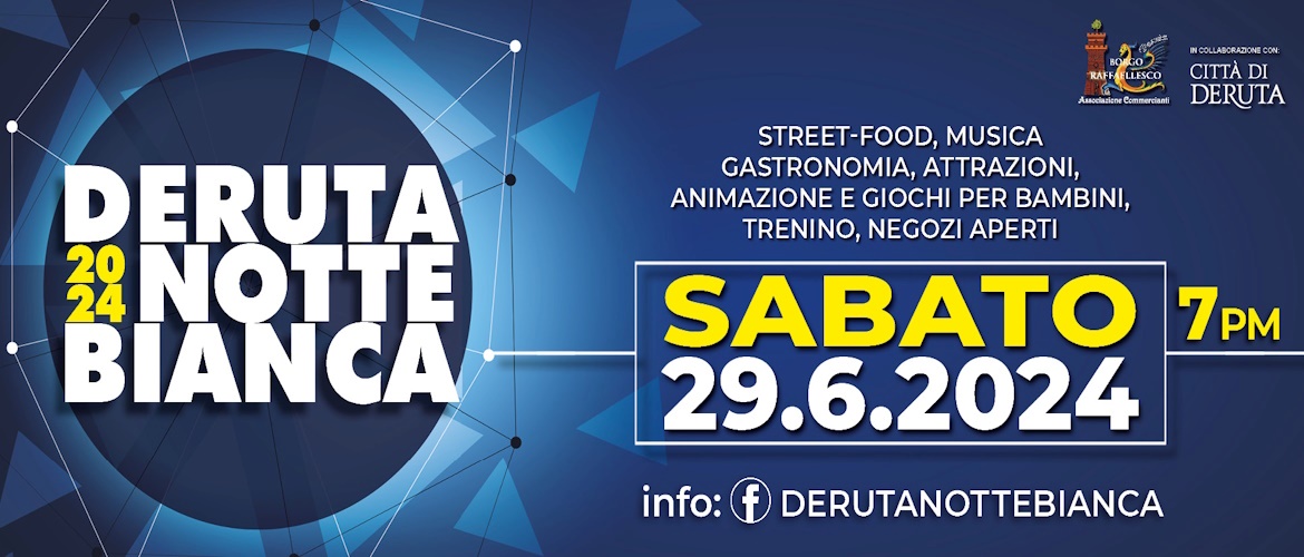 The city of Deruta is ready to experience an unforgettable night with the long-awaited Notte Bianca, which will be held on Saturday 29 June, along Via Tiberina, with music, shows, food and craft markets.