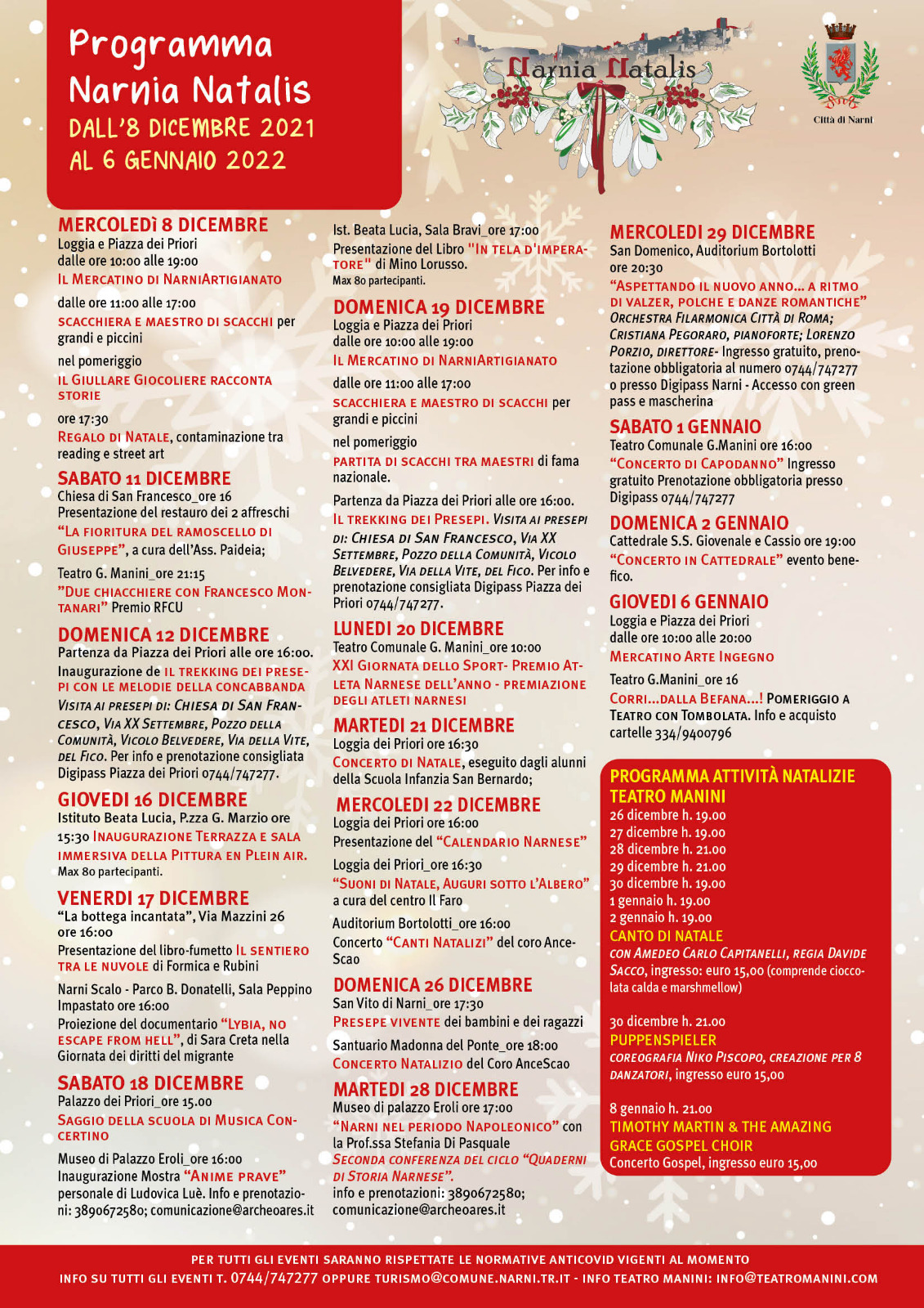Grande attesa poi per il premio atleta narnese dell'anno in programma il 20 dicembre alle 10.00 al teatro Manini e per la presentazione del calendario narnese a cura del maestro Mauro Laurenti.