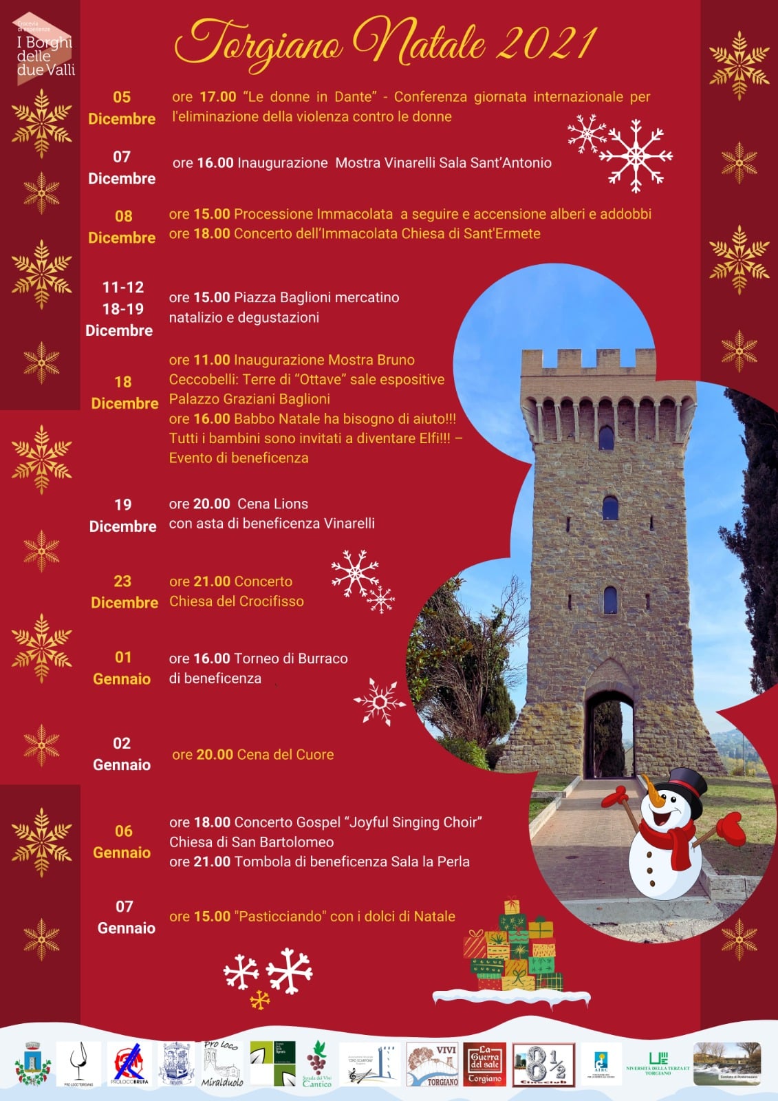 L’11, il 12, il 18 e il 19 dicembre, in Piazza Baglioni, sarà allestito il Mercatino natalizio. Il 18 dicembre alle 11.00 a Palazzo Graziani verrà inaugurata la Mostra Bruno Ceccobelli - Terre di “Ottave” mentre nel pomeriggio tutti i bambini sono invitati a diventare Elfi per un giorno in un evento di beneficenza.