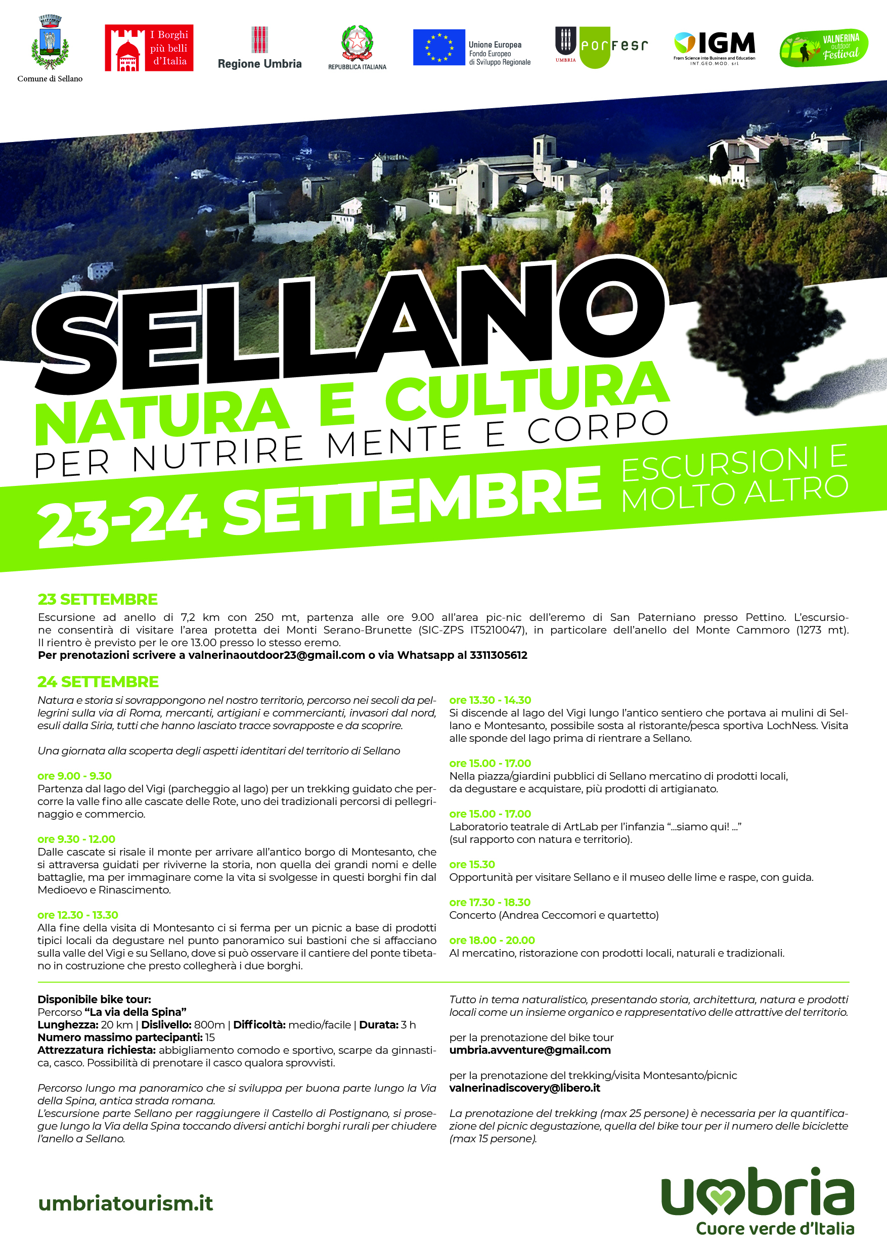 La prenotazione del trekking (max 25 persone) è necessaria per la quantificazione del picnic degustazione, quella del bike tour per il numero delle biciclette