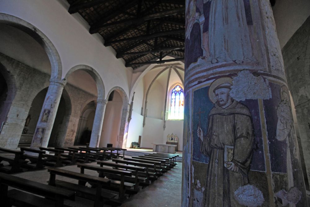 Cammino in pianura, ma reso difficile sia dalla lunghezza del percorso sia dai numerosi saliscendi che si susseguono fra le colline. Si inizia con la Chiesa di San Michele Arcangelo, antica abbazia benedettina a Schifanoia, per poi proseguire con Santa Pudenziana, chiesa di origine romana, e la Chiesa di Sant’Angelo in Massa, in origine abbazia benedettina, per finire con la imponente Rocca del Cardinale Albornoz. Narni, terra di Sant’Adiuto, è città medioevale dal ricchissimo patrimonio storico, artistico e culturale, nota per la stupenda cattedrale e celebre per la Corsa all’Anello. La tappa si conclude alla Chiesa di San Francesco, datata al XIII secolo.