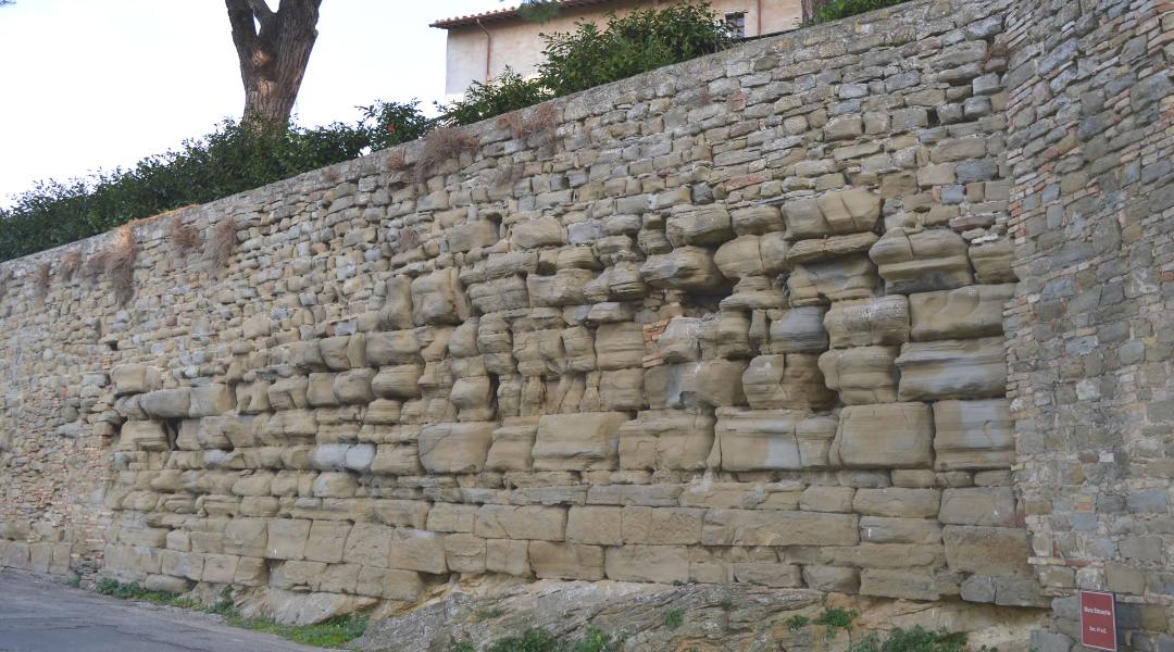 The ancient Etruscan settlement on the left bank of the Tiber, controlled by the nearby and powerful Perusia (Perugia), was equipped with a mighty city wall enclosing the entire settlement, built on the hilltop where the medieval village later developed and where today the historic centre of Bettona stands.This important work of fortification reveals defensive needs, quite understandable for a centre situated in a strategic position dominating the valleys of the Chiascio and the Topino and along the Via Amerina, an important communication route of antiquity. The Etruscan walls extended along a route of about one kilometre and display, where visible, a substantially homogeneous structure: squared blocks of local sandstone of various sizes and heights, in parallelepiped or trapezoidal form, placed in horizontal rows. Some of these show, on the visible side, the marks of workmanship. Comparisons with similar walls in other Umbrian localities, such as Todi, Assisi and above all Perugia, suggest dating the city walls of Bettona to around the 3rd century BC.