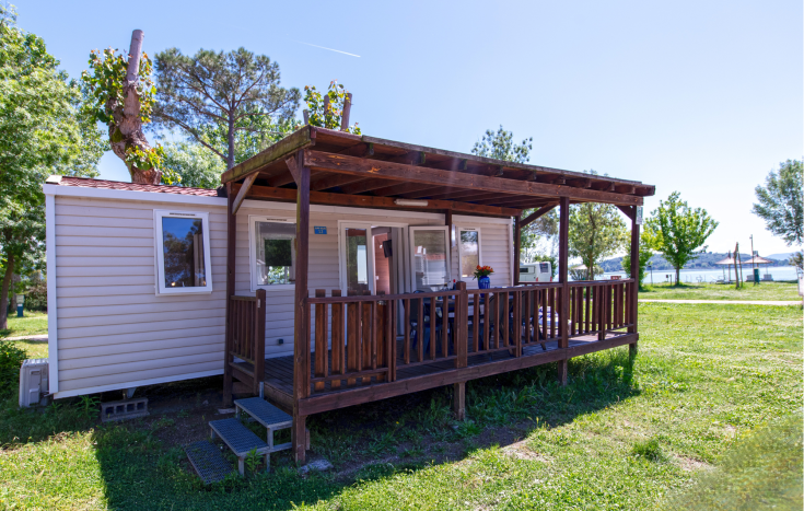 - Covering 70,000 m², it offers large pitches with lake view, mobile homes, Safari Lodge tents, Coco tents, Mini Safari tents, two swimming pools for adults and children, a jacuzzi, a small harbor with boat moorings, a large amphitheater for guest entertainment, big screen, international entertainment, fitness club, mini club, playground, tennis, basketball, beach volleyball, five-a-side football, table tennis and Dragon Boat excursions. Guests enjoy free use of sun umbrellas and deckchairs by the lake, piers and floating platforms, camper service, adventure park for children and teenagers, shared barbecue areas, market, snack bar, free Wi-Fi (100% coverage), free charging stations for e-bikes, with a fee for electric cars, and dogs stay for free.