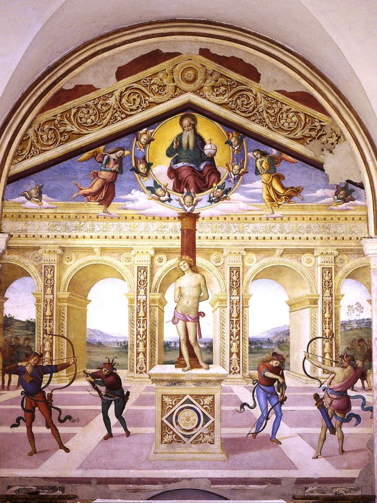 Not far away, outside the Porta Perugina, is one of the most interesting and visited places in the village: the Church of San Sebastiano, a 15th-century chapel with simple forms, but which houses inside one of the masterpieces by Pietro di Cristoforo Vannucci, known as Perugino: the enchanting Martyrdom of St. Sebastian, painted between the spring and autumn of 1505. The fresco occupies the entire back wall of the building, and depicts the martyrdom of the saint within a landscape of extraordinary lightness and gentleness. The church also contains a fresco of the Madonna Enthroned. Coming from the nearby Sant'Agostino, it was attributed to Perugino, and more recently, to his great pupil Raphael.