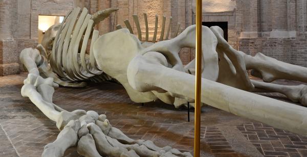 The "Cosmic Magnet" is a contemporary artwork by Gino de Dominicis. It's housed at the Italian Center of Contemporary Art inside the ancient Church of the Holy Trinity. It is a sculpture representing a monumental anthropomorphic skeleton, with the exception of a bird's beak in place of the nose.
