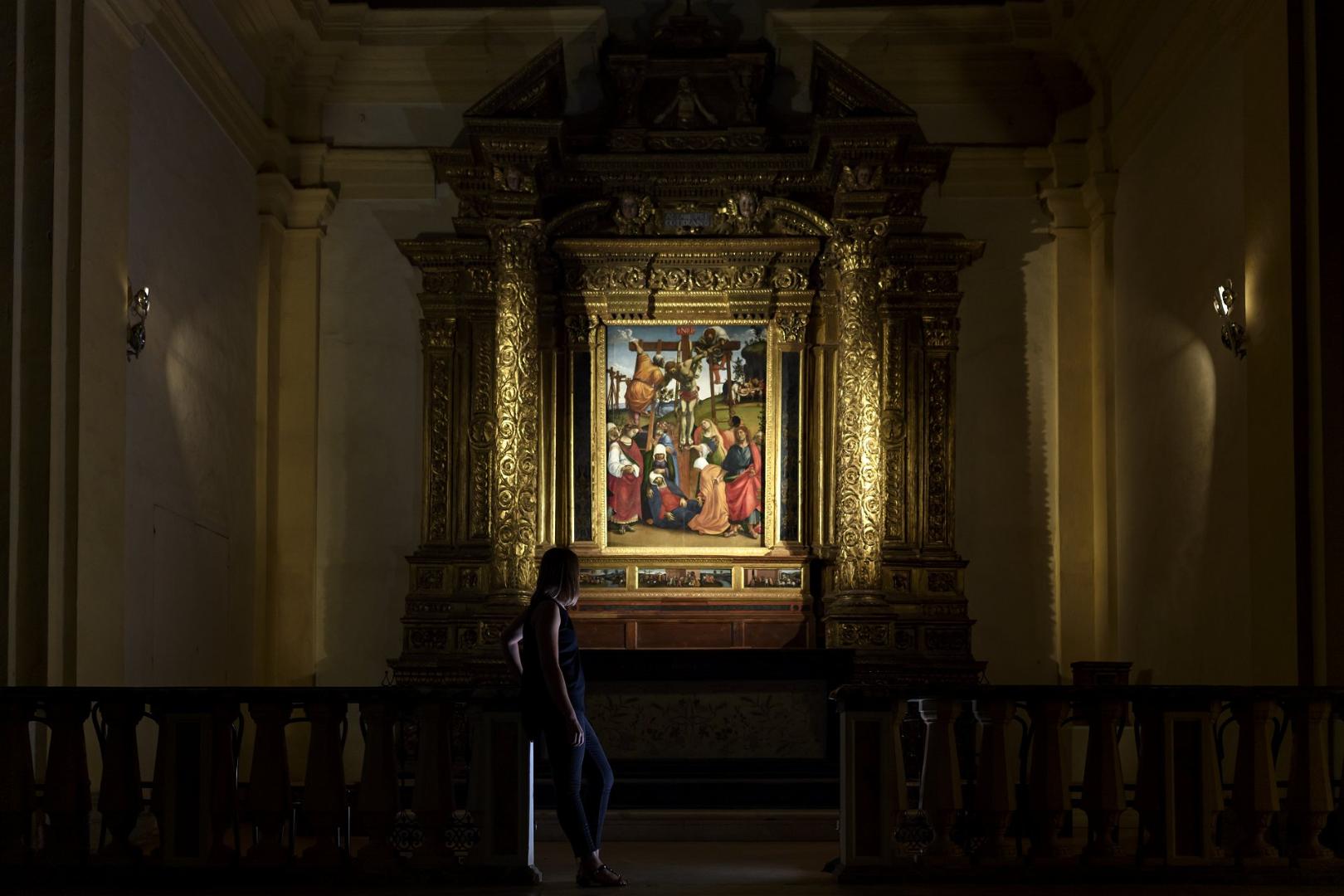 There is a single nave, altars dating back to the eighteenth century, first of all the richly carved (1711) designed to contain the beautiful Deposition of the Cross by Luca Signorelli, commissioned by brotherhood of Santa Maria in 1516. In 1998 the church, after careful restoration by the Municipality of Umbertide, was transformed in the Museum of Santa Croce. Among the most interesting works, in addition to the Signorelli altarpiece, are a painting by Pomarancio depicting the Madonna and Child in Glory with Angels and Saints (1577) and a 1528 wooden sculpture of St. Roch attributed to Romano Alberti, called Il Nero, from the nearby church of San Francesco. The former church of Santa Croce is also used for recordings of classical works, with the participation of internationally renowned masters, and it is the stage of prestigious music festivals.
