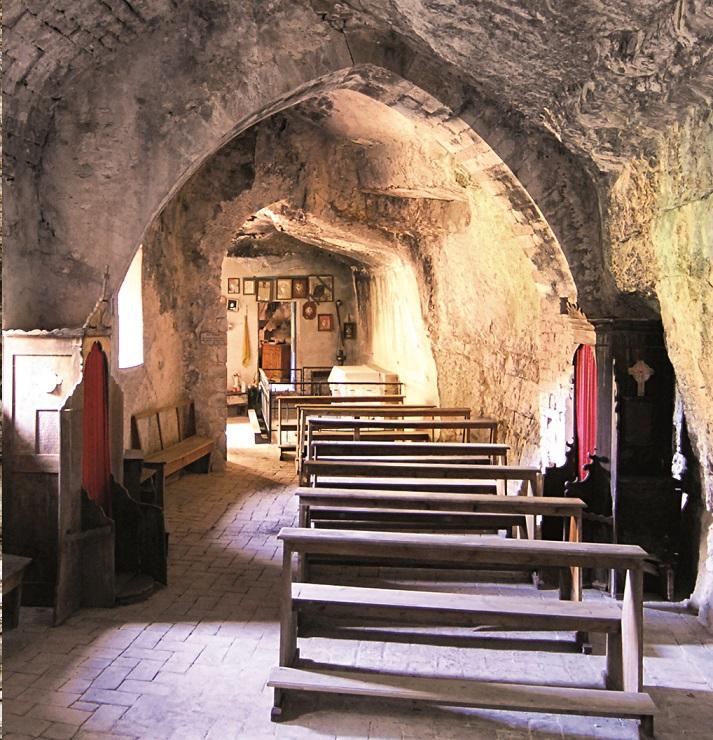 In 1294 the monastery was donated to St. Giovanni in Laterano due to a lack of monks. In 1308 the Augustinians from Cascia built the hermitage of St. Croce and carved into the rock about twenty cells that are today still visible but not all accessible, and a small church also half- carved in the rock. In 1416 the church was frescoed, and these frescoes belong to the Umbrian school influenced by Siena.
