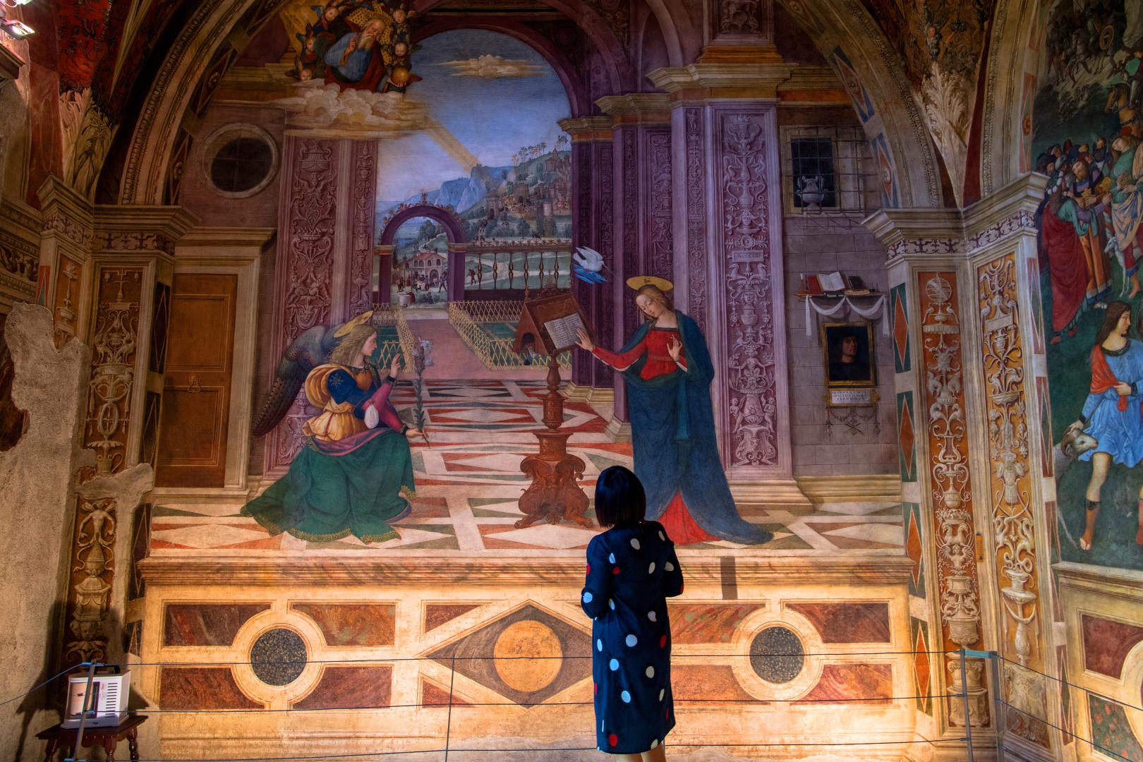 The Church of St. Maria Maggiore will be enhanced by installations of floating floors, lighting and audiovisual supports to create a guided visit “within” the frescoes of the famous Baglioni Chapel. The result is a new perception of the genius loci and of the deep religious and spiritual meaning of artworks that have been recognized not only as the masterpieces of Pinturicchio, but also among the greatest masterpieces of the entire Italian Renaissance.