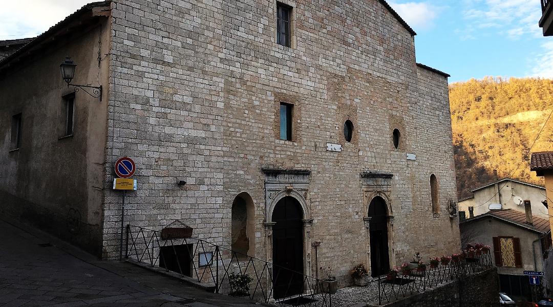 The collegiate church of Santa Maria is situated in Cascia within the walled perimeter, next to the Leonine gate.
