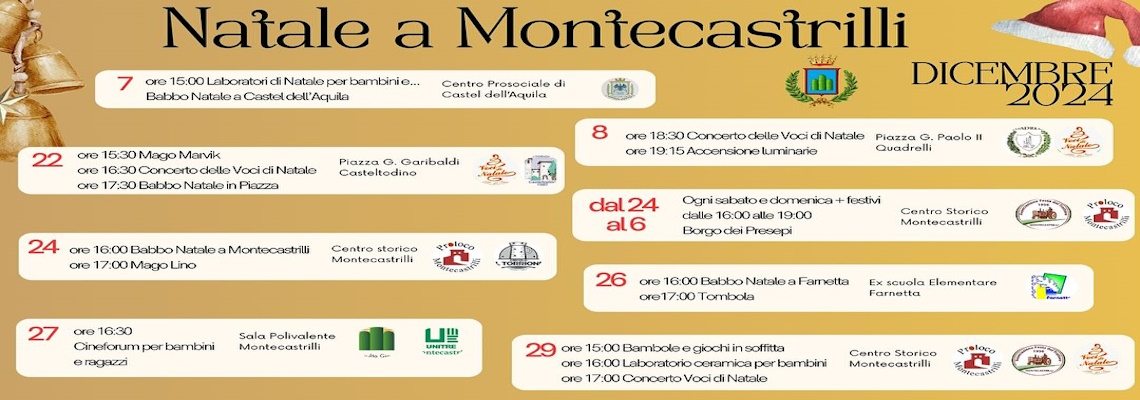 Jusqu'au 6 janvier 2025, Noël est de retour à Montecastrilli avec un calendrier rempli d'événements de Noël qui animeront la région.