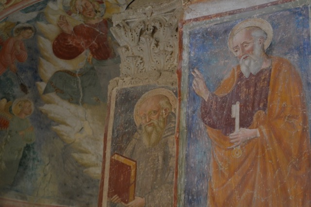 Dans la partie supérieure des murs latéraux et dans l’arc triomphal, vous trouverez un important cycle de fresques du XIIe siècle avec des histoires de l’Ancien et du Nouveau Testament, considéré parmi les plus importants de la peinture romane en Italie pour le nombre de scènes et leur état de conservation, représentant l’une des premières réactions au style « hiératique » de la peinture byzantine. Les murs restants et les trois absides sont décorés de fresques des XVe et XVIe siècles.