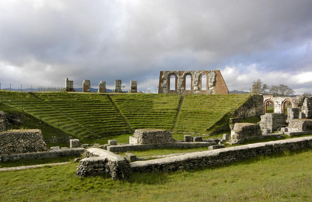 Le bâtiment le plus important de toute la zone est le théâtre romain, dont la construction a commencé au 1er siècle avant J.-C. et s’est achevée entre 55 et 20 avant J.-C.