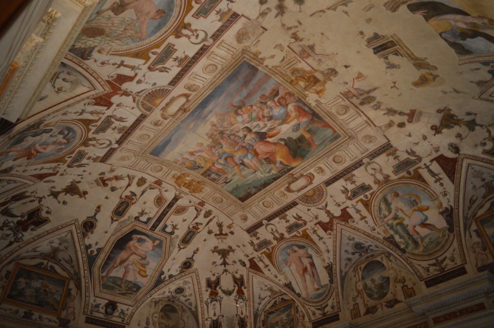 La cathédrale donne sur la Piazza Gramsci, également occupée par le magnifique Palazzo della Corgna, construit par l'architecte Galeazzo Alessi au milieu du XVIe siècle. Les salles à haute voûte et les escaliers monumentaux de l'imposante demeure contiennent des fresques maniéristes de Salvio Salvini et Pomarancio, avec des représentations mythologiques, des scènes sacrées et des décorations grotesques. Actuellement, le palais accueille des expositions temporaires, ainsi que l'intéressant musée d'histoire naturelle et du territoire de Città della Pieve et la bibliothèque municipale « Francesco Melosio », qui possède un important patrimoine livresque de près de 50 000 volumes, dont des incunables anciens et des textes précieux. À proximité se trouve la Piazza Plebiscito, où une plaque commémorative indique la maison natale de Pietro Vannucci: c'est là que le peintre aurait vécu avant son apprentissage florentin, mais l'immeuble est resté sa propriété même après qu'il soit devenu riche et célèbre.