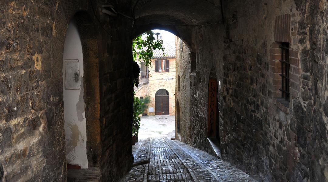 On the main square of the town stands the mighty Rocca, a fortalice based on a triangular plan with three equal sides and three towers connected to each other and to the castle walls by underground passages. Of interest is the church of Sant'Agostino, from 1136 with frescoes by the Foligno School; the church of Saints Antonio and Antonino (1260), with a Romanesque crypt and a tempera panel by the Umbrian-Sienese School; and the church of Sant'Andrea that retains from the original Romanesque structure the crypt and some sculptures on the facade that were part of the rose window, after it was completely restructured in 1804. In the vicinity are interesting itineraries through a series of castles and other medieval constructions that made an effective scheme of defence for the district: most were built in the early Middle Ages (13th – 14th century) and now constitute an extraordinary open-air museum. The most distinctive fortified archetype is the Castello di Barattano. Noteworthy is the fortified hamlet of San Terenziano, where there are several churches of interest: the lower church with Romanesque crypt; the upper church (13th century); the church of Sant'Apollinare (13-14th century) and the church of the Madonna delle Grazie (15th century). The hamlet of Grutti has underground caverns and the Romanesque church of Santa Maria di Agello; while Marcellano has the church of the Madonna del Ponte; Saragano the Castello Longobardo; and Pomonte the Baronial palace and the ruins of the small castle called Castellaccio.
