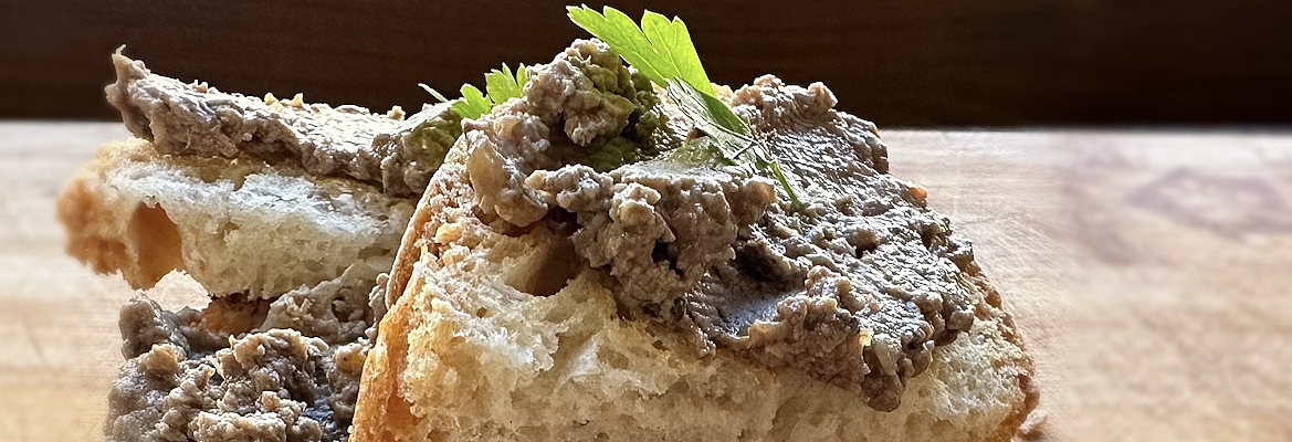 Le pâté est fabriqué à partir de foies de volaille et il est excellent accompagné d'un pain artisanal ombrien légèrement grillé, connu pour sa faible teneur en sel. Le crostino chaud et parfumé servi avec cette sauce savoureuse s'accompagne d'un bon verre de vin rouge local.