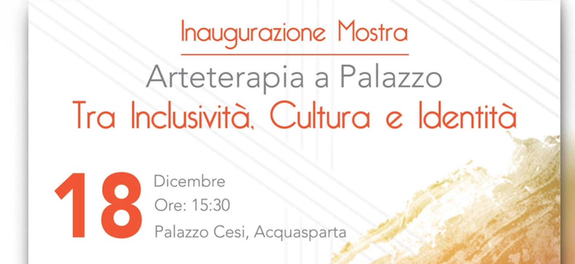 Il 18 Dicembre 2022 è stata inaugurata nell’antico Palazzo Cesi di Aquasparta, la mostra Arteterapia a Palazzo. Tra Inclusività, Cultura e Identità, la tappa finale di due progetti nati a settembre dalla collaborazione tra Associazione ACQUA, Cooperativa Sociale Alba e Centro La Cometa.