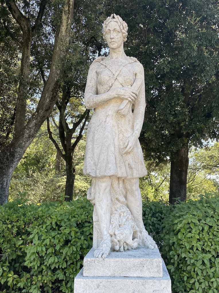 Il parco è costituito da quattro viali paralleli, che confluiscono in un anfiteatro, adornati da alberi secolari, simbolo dell’antichità e dell’importanza del luogo.