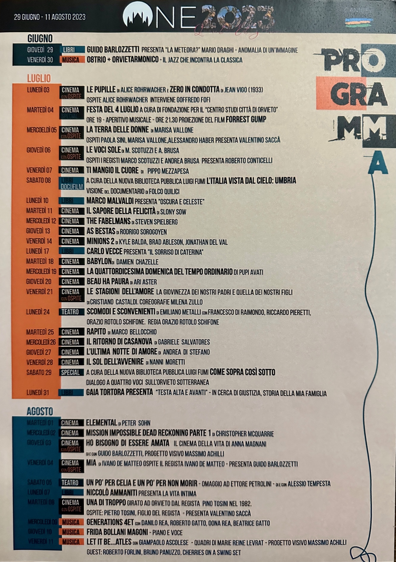 Ci saranno anche due spettacoli teatrali e tre appuntamenti speciali in collaborazione con la biblioteca comunale e il Centro studi "Città di Orvieto".