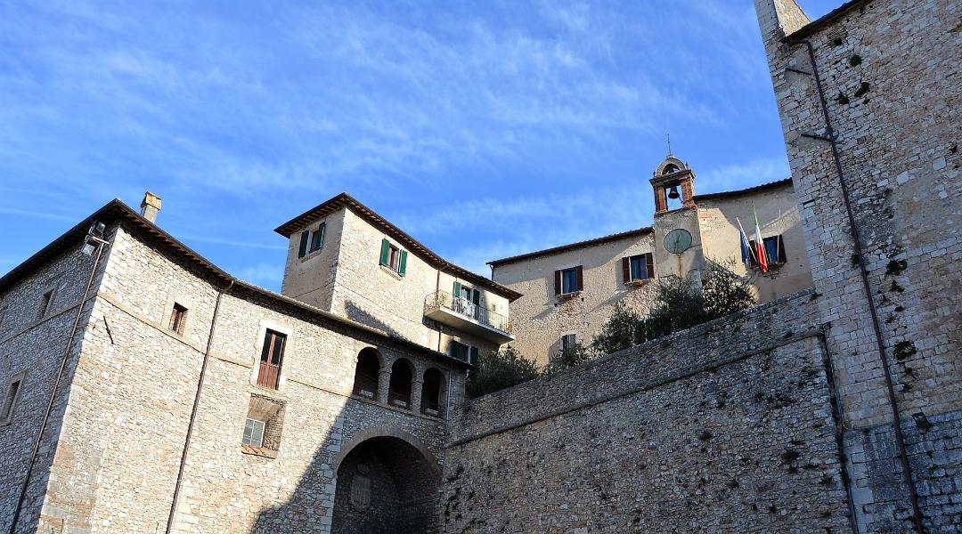 Una scala in pietra, alle cui pareti si possono ammirare lapidi e frammenti di origine romana e alto medievale, conduce al piano superiore dove si accede nell’antica sala dei Priori, oggi sala del Consiglio comunale. Alle pareti della sala, in alto tutt’intorno, è possibile notare gli stemmi delle famiglie patrizie locali, sebbene il Costanzi affermi trattarsi dei blasoni dei cardinali che ricoprirono la carica di Governatori di Stroncone.