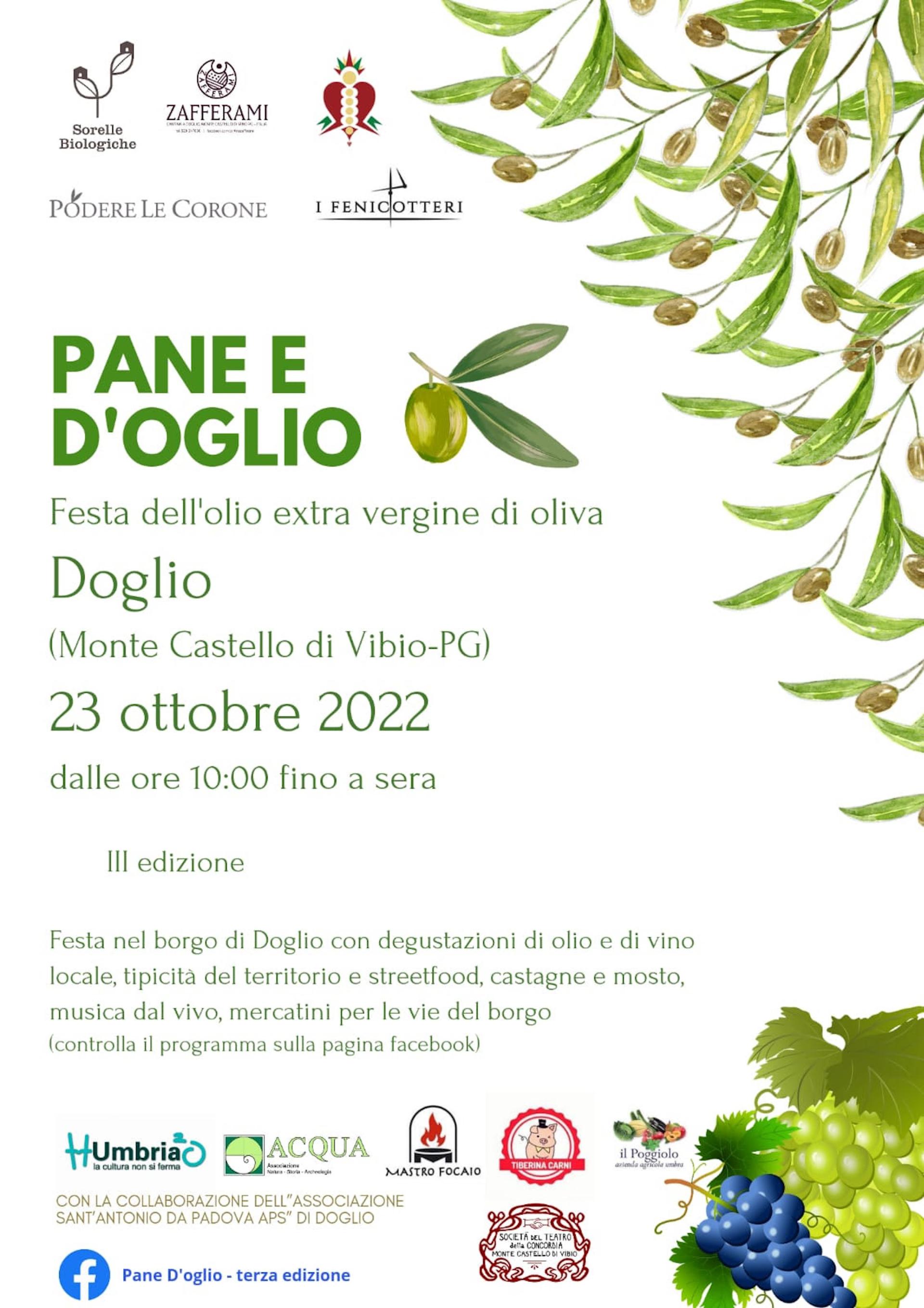In un angolo di paradiso, il borgo di Doglio, nel comune di Monte Castello di Vibio, famoso per il Teatro della Concordia, un gioiello da vivere e da vedere, oltre che essere il teatro più piccolo al mondo, torna la terza edizione di Pane & D'oglio.