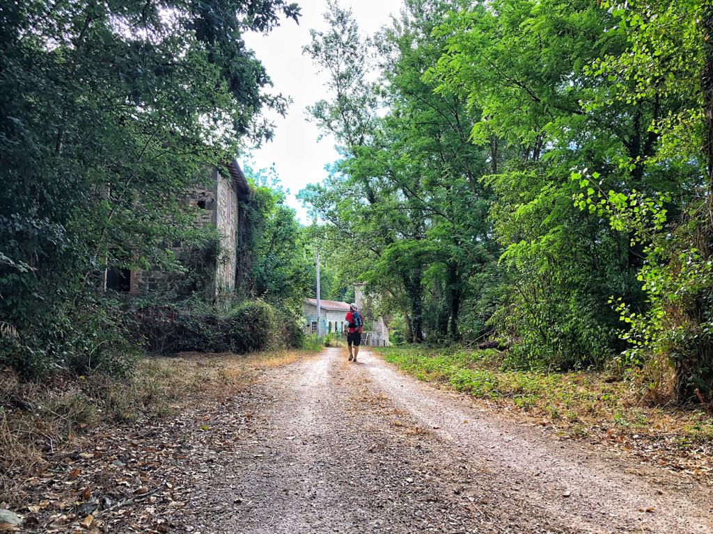 dal Ponte si prende a sinistra, il sentiero si inerpica sulla collina, arriva al Palazzaccio (cedro monumentale), sale al borgo di Mannella, poi alla chiesa di S. Maria del Monte