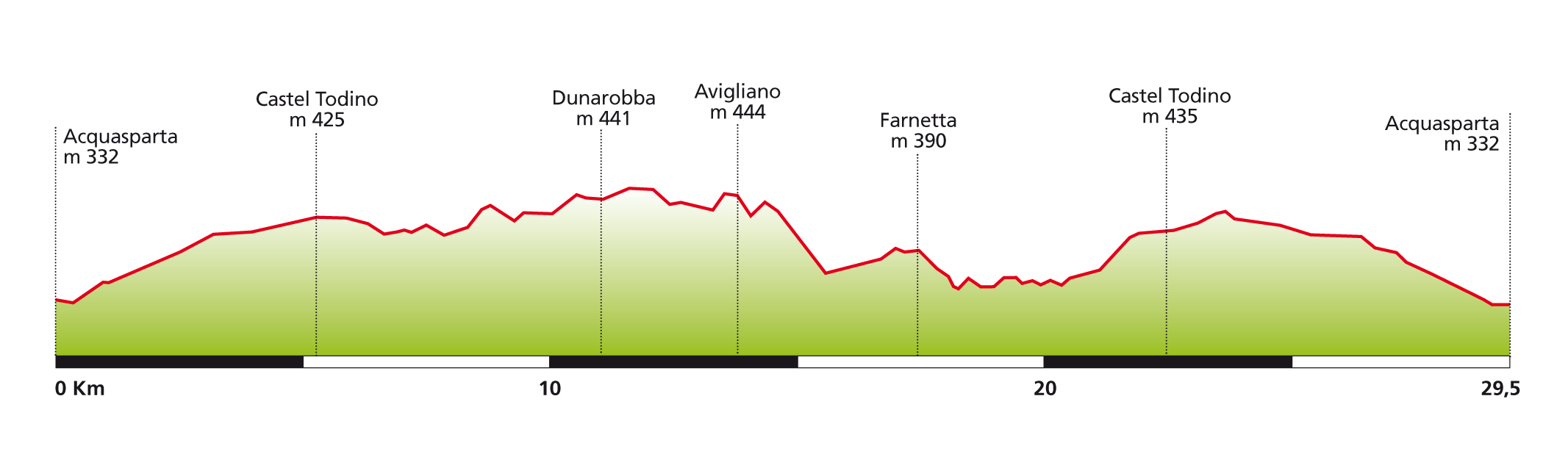 Questa proposta parte da Acquasparta, antica città sorta nei pressi delle rovine dell’insediamento romano di Carsulae, e tocca i borghi di Castel Todino, Montecastrilli e Avigliano Umbro.