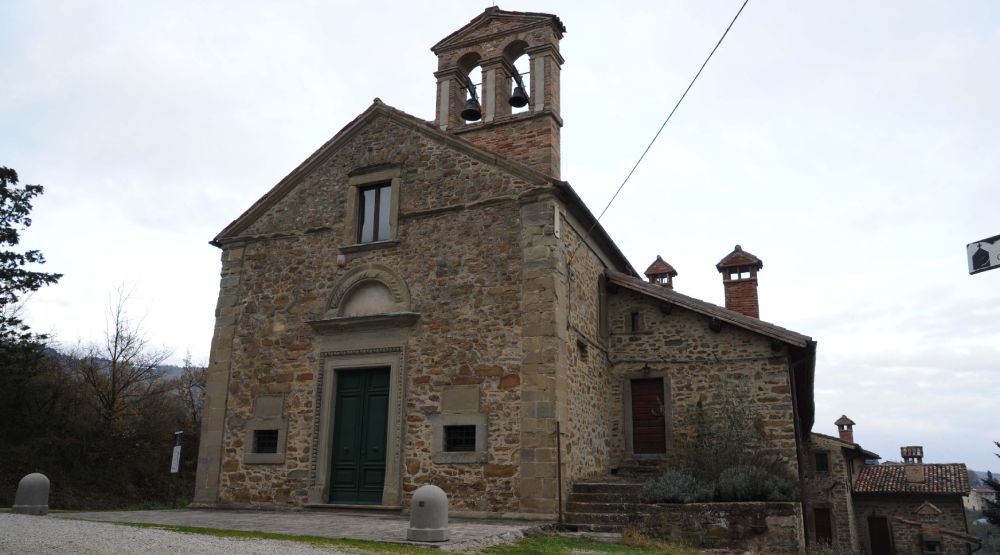 L’attuale sacrestia occupa lo spazio del primitivo oratorio quattrocentesco e custodisce tracce di affreschi tardogotici attribuiti ad un pittore locale d’ispirazione senese-aretina. Da segnalare, tra i più interessanti, San Crescentino che uccide il drago e la Madonna della Misericordia.