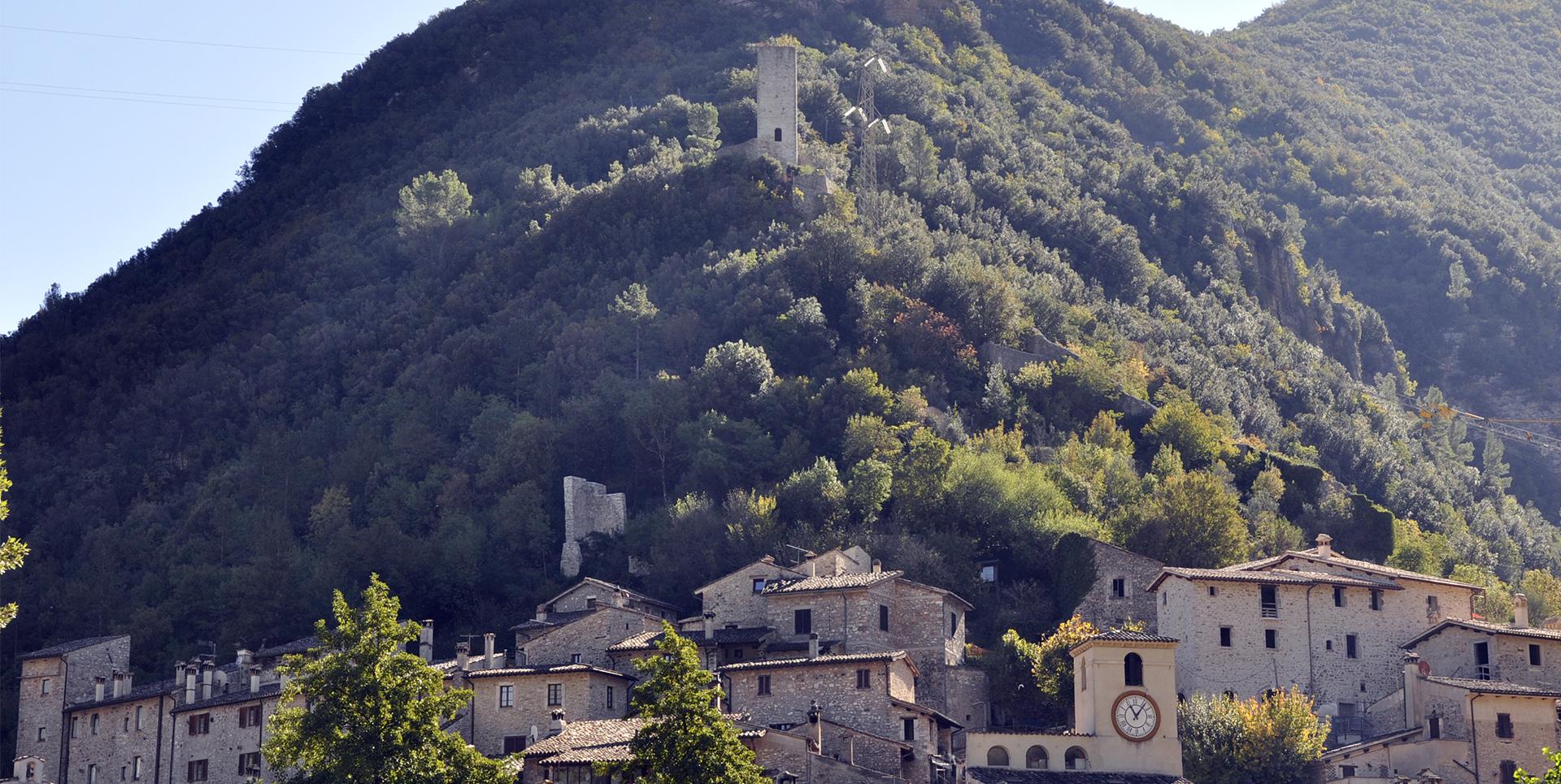 La presenza di una possente fortificazione denuncia la funzione strategica dell’insediamento, sorto sulla riva sinistra del Nera (m.281), a guardia di un passaggio obbligato dell’antica strada della Valnerina, alla confluenza del percorso montano lungo la Valcasana.