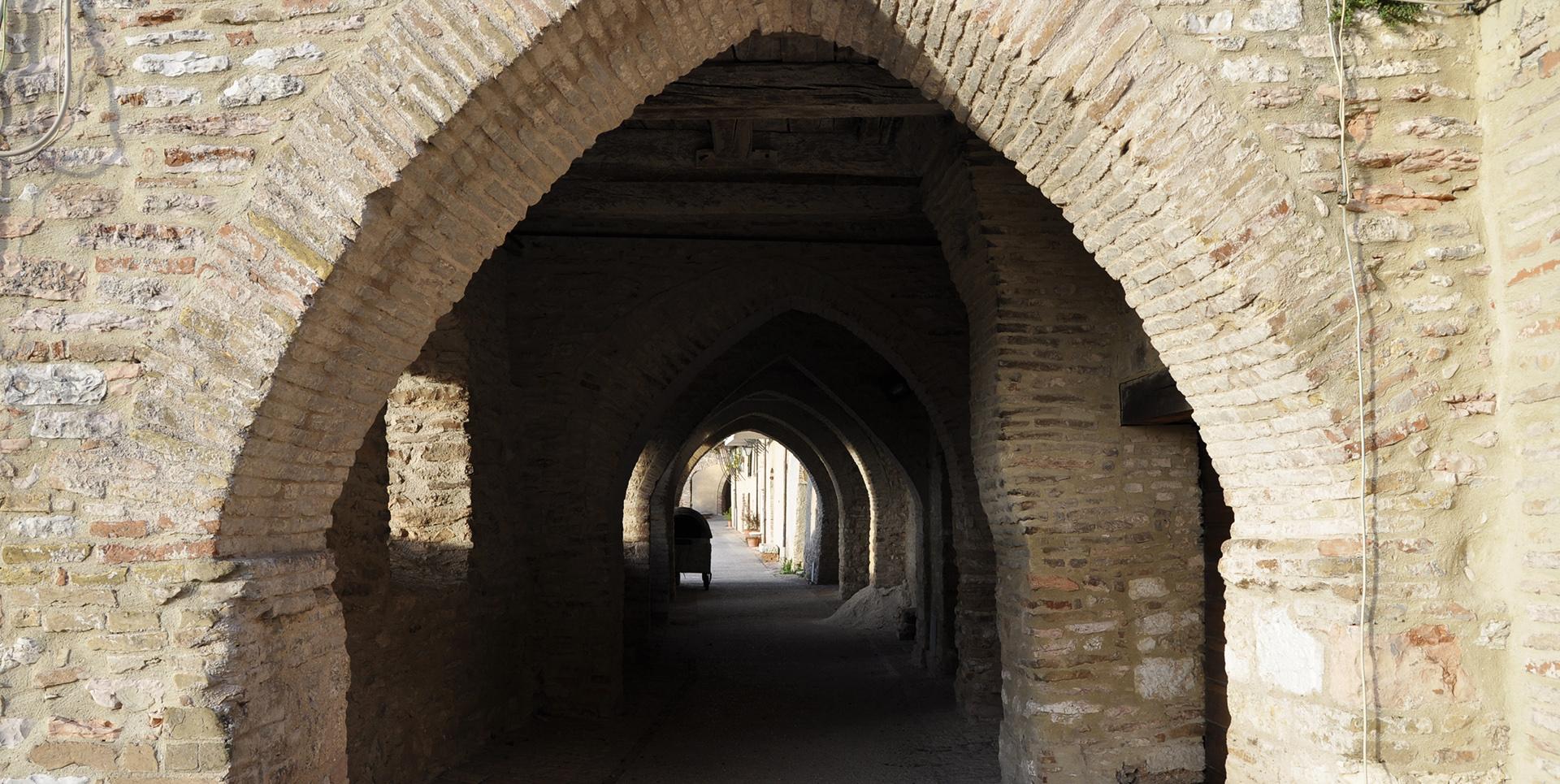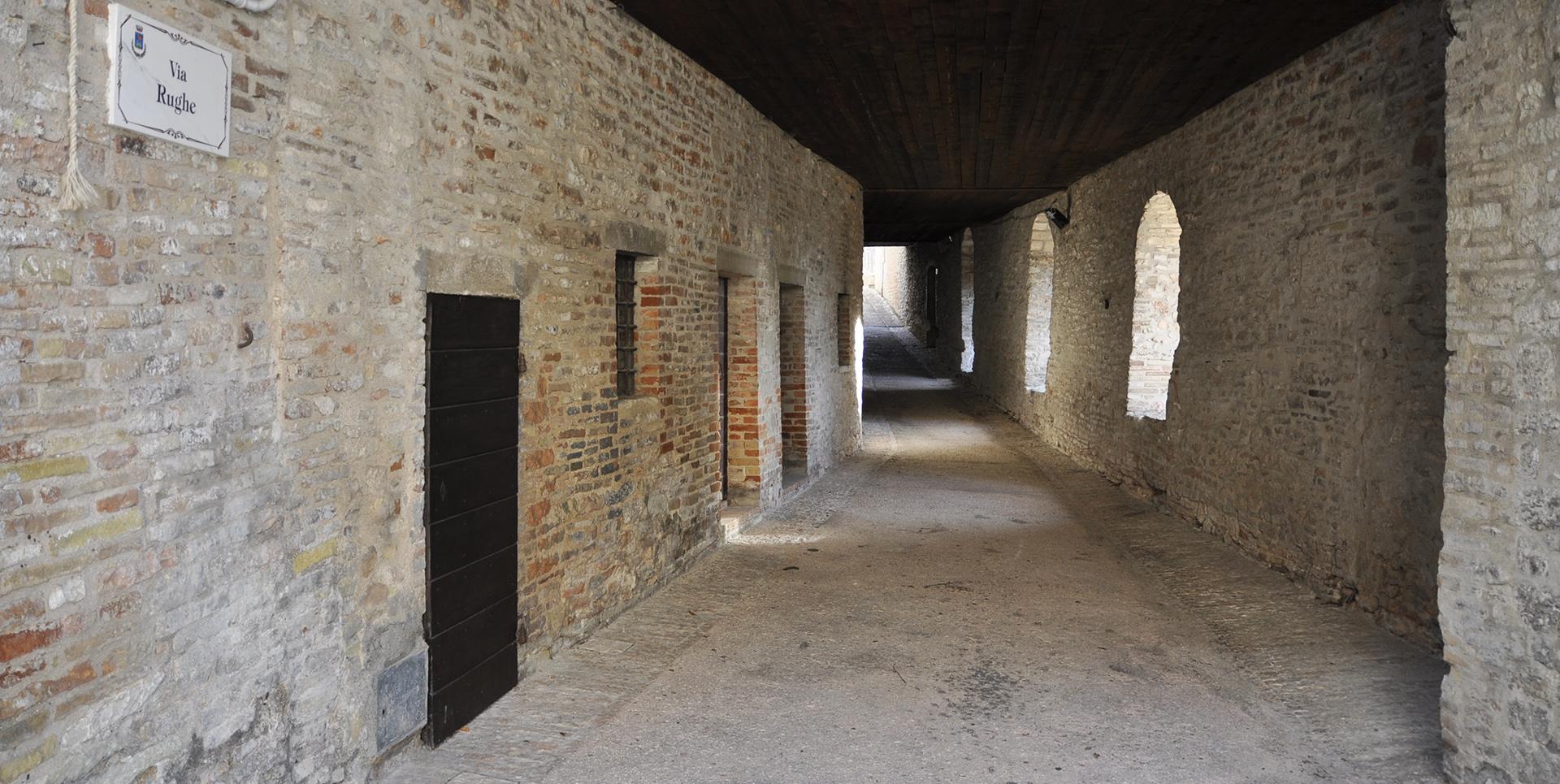 Un raro esempio di architettura castellana medioevale che risolve in un'unica soluzione i problemi della viabilità e della difesa lungo il perimetro interno della cinta muraria di ponente, sulla quale si apre la portam castri che, sotto la torre merlata, è tuttora l'ingresso principale del castello.