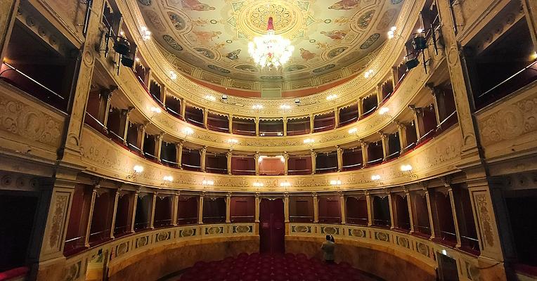 Il più antico di Spoleto: nel 1657, come “Teatro della rosa”, ospitava gli spettacoli dell’Accademia degli Ottusi; dieci anni dopo diventa il “Nobile teatro di Spoleto”. Cade in disgrazie due volte: dopo la ristrutturazione del 1817, quando vengono anche trafugate le preziose decorazioni settecentesche, e nel 1864, quando l’inaugurazione del Teatro Nuovo segna la sua decadenza.
